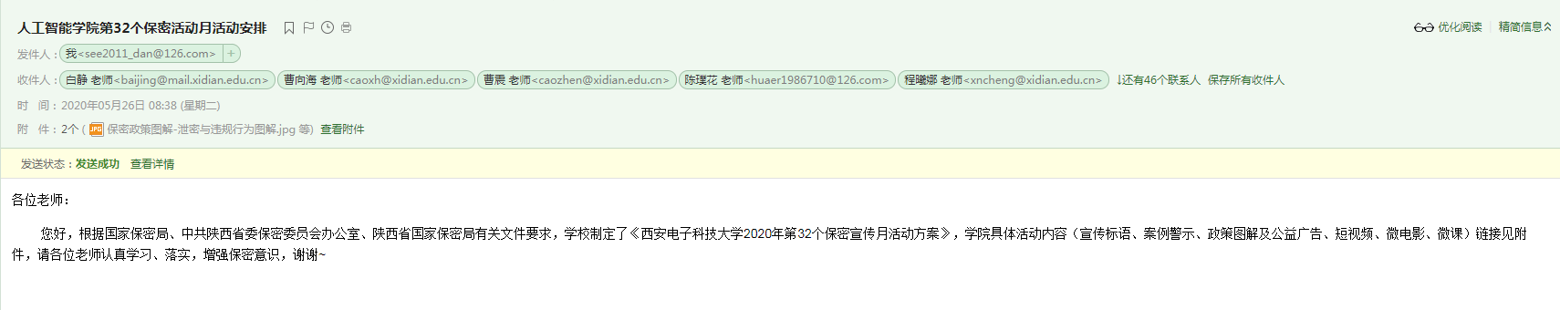 此外,beat365平台官方网站还制作了宣传标语、案例警示和系列学习资料清单,以展板、邮件、微信、学院网站和走廊电子屏幕等多种形式发布保密宣传教育相关信息,全方位向全体教师和广大学生推送保密提醒。