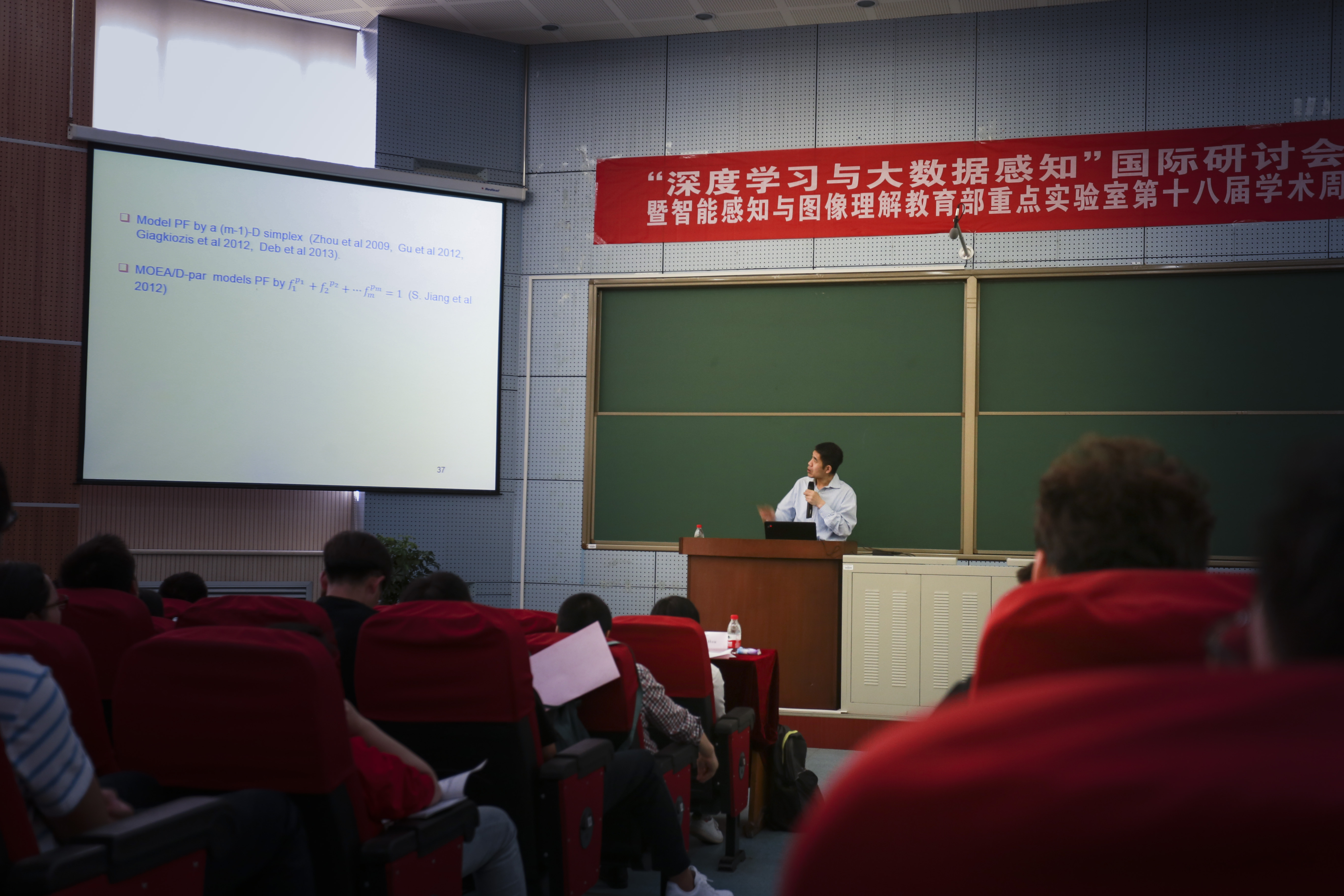 25日上午8:30分“深度学习与大数据感知”国际研讨会在beat365平台官方网站侯彪教授的主持下正式开幕,在25日到28日4天的学术活动中共有45场精彩的学术报告呈现,由领域顶尖专家学者、新锐企业领导者及刻苦钻研的学生共同展现了多样化的学术理念与实践应用,每场报告都座无虚席,走道也站满了学生,报告厅成为了一片浩荡的求知之海洋,每一朵浪花都饱含着新知与思考。45场报告涉及了“基于脑认知机理的条件证据理论及其深度学习方法”、“Multi-objective Bayesian Optimization”、“高分辨率图像智能处理技术”、“Scene Representation and Classification from Remote Sensing Images Based on Deep Learning”、“深度学习影像感知及解译”、“数据驱动的进化优化”、“面向机器人灵巧操作的认知传感与大数据处理”、“大数据、云计算、物联网-计算智能的研究前沿与应用”、“变分贝叶斯联合优化及应用”、“头脑风暴优化算法”、“Online Ensemble Learning of Class Imbalance Data”、“Current Hot Topics in Many-Objective Optimization”、“Online Growing Neural Gas for Anomaly Detection in Changing Surveillance Scenes”、“类脑计算的理念与实践”、“复杂场景中人群行为的研究及其应用”、“Remote Sensing and Media”、“协同过滤算法关键性技术及其稀疏性研究”、“概率分类学习”、“无人车场景计算与自主运动”、“大数据时代模式识别的机遇与挑战”、“语义通讯”、“What Can Evolutionary Algorithms Do on Complex Network”等各科研领域与课题。