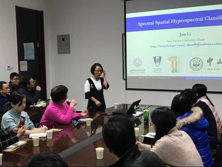 应国家创新引智基地、国际智能感知与计算研究中心、智能感知与图像理解教育部重点实验室主任焦李成教授的邀请,中山大学地理科学与规划学院教授、博士生导师,中组部海外高水平学者入选者,ESI高被引学者李军教授于2018年1月24日上午到实验室进行交流访问,并做了一场高光谱分类方面的学术报告“Spectral Spatial Hyperspectral Classification”。智能感知与图像理解教育部重点实验室主任焦李成教授代表实验室对李军教授的来访表示了热烈的欢迎,介绍了实验室的发展历史和研究优势,并就双方今后的合作提出了期望。报告会由张向荣教授主持。