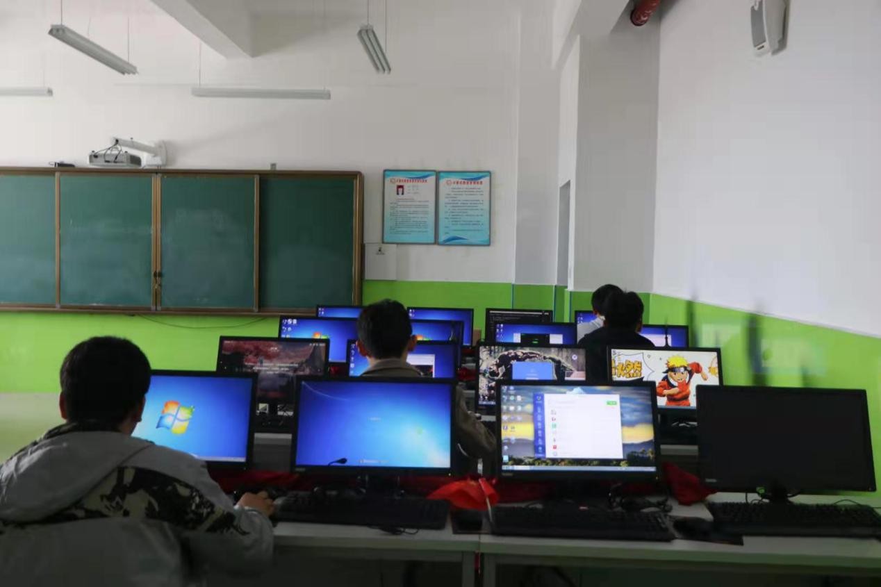 在计算机教室中,志愿者们小心翼翼地帮助清理电脑中的垃圾软件。学校地处偏远地区,计算机教室的电脑难以得到定期检查和维修,流氓软件、电脑病毒丛生。我们的志愿者们来到学校后主动对学校机房的电脑进行了大清扫和杀毒工作,只为让小朋友们能使用到良好的设备,获取更多的科学知识。