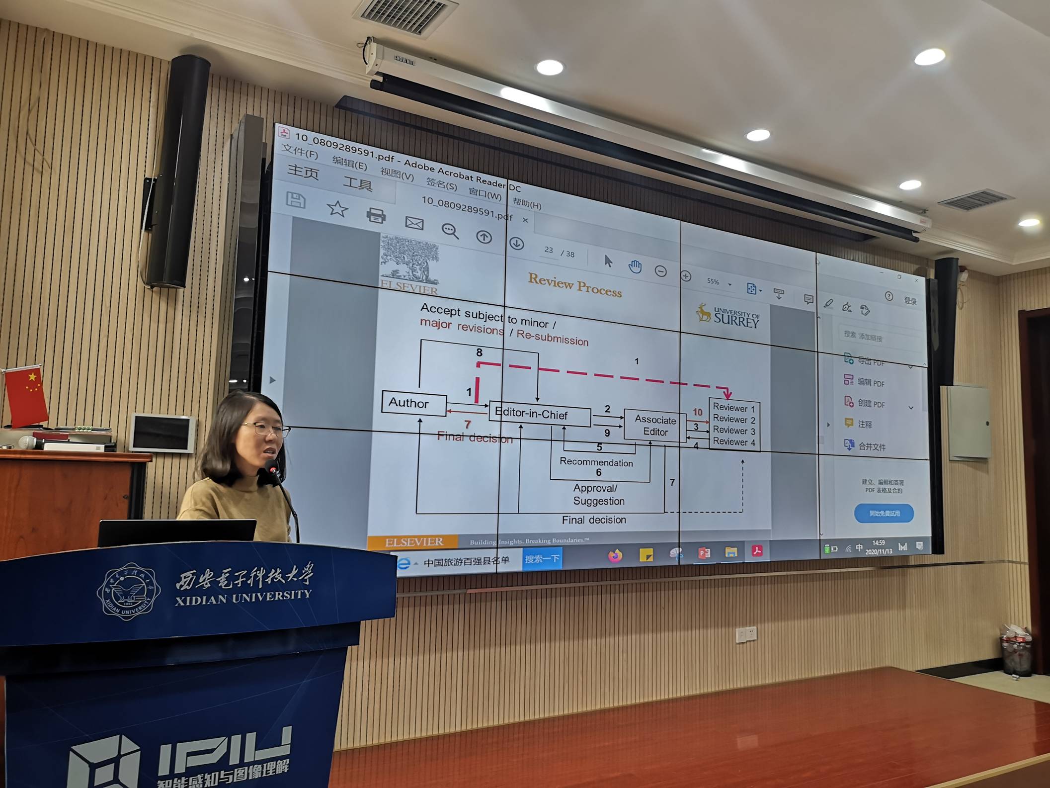 在讲座过程中,王晗丁教授首先向同学们展示了学术科研过程中涉及的各个环节,从学生的角度出发,带领同学们全面了解从初接触论文写作、选题研究、投稿修改到论文最终发表等学术科研过程。分析在各个环节容易出现的学术规范与学风问题,强调学术道德和学术规范是科学研究工作者应遵循的基本伦理和规范,是保证学术正常交流、提高学术水平,实现学术积累和创新的根本保障。学术论文过程中要倡导严谨学风,防止学术浮躁,注重论文质量,不抄袭、剽窃他人作品,正确对待学术研究中的名与利;反对在学术研究中弄虚作假,要以实际行动端正和践行学术道德。要坚持实事求是,遵守学术规范,尊重他人的知识产权,遵守学术刊物引文规范。在学术论文中应明确表明引用他人成果与观点等内容;杜绝剽窃、抄袭、篡改、伪造、泄露、一稿多投和故意歪曲他人学术观点等违反学术规范与学术道德的行为。