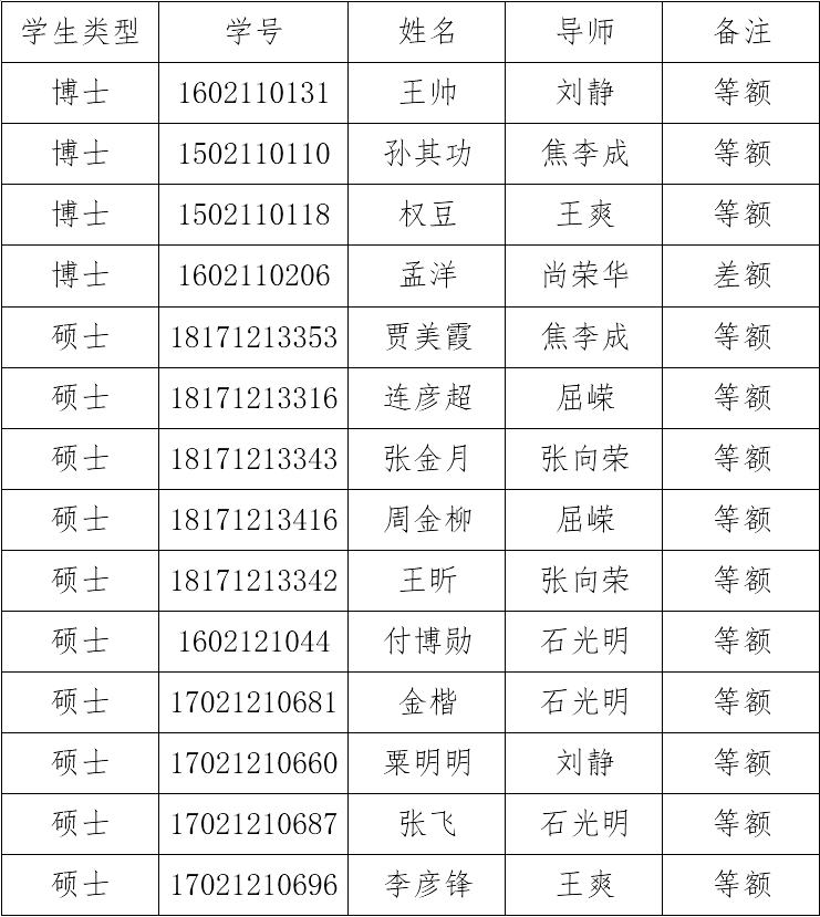 经学生申请,导师推荐,资格审核,学院组织答辩和集中评审,现将beat365平台官方网站2019年度研究生国家奖学金拟获奖学生名单予以公示。