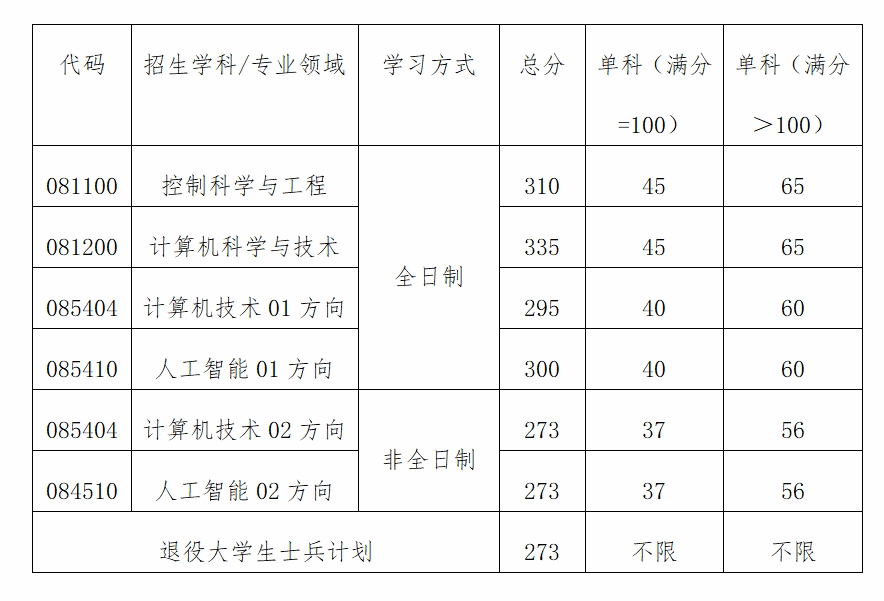2、081100控制科学与工程00方向、081200计算机科学与技术专业01方向、085410人工智能01、02方向,复试专业考试成绩=笔试成绩(满分400分)/4。