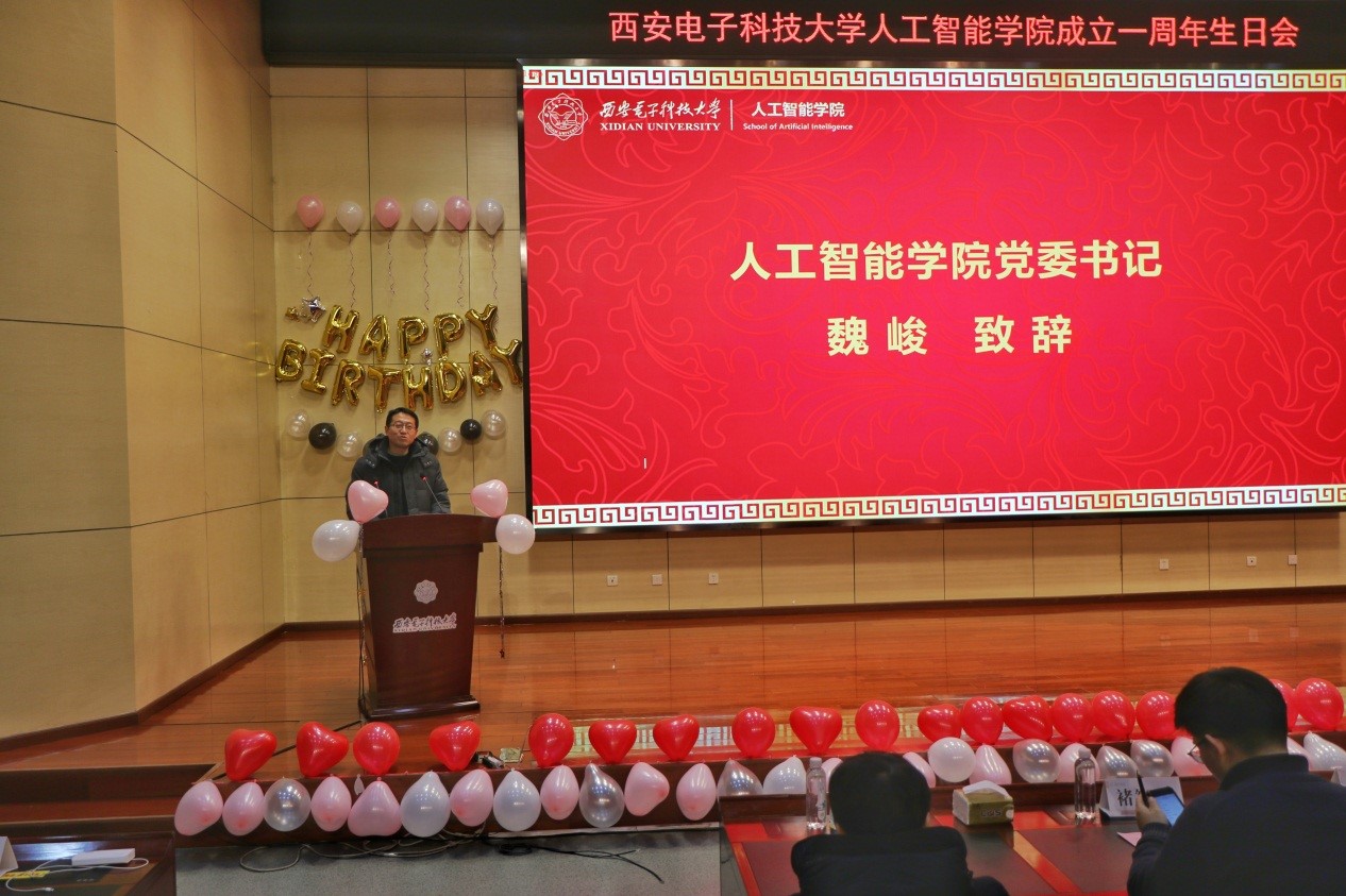 (通讯员 李文烜 李海宁)12月27日晚,beat365平台官方网站“期待AI”主题一周年生日会于南校区行政楼210报告厅隆重举行。beat365平台官方网站党委书记魏峻、博士生导师侯彪教授、董伟生教授、党委副书记高晖、研究生院副院长王爽出席生日会,科大讯飞陕西大区总经理彭梦明、西安研究院副院长付中华、智慧城市行业总监周梦浩、智慧城市行业总工周少甫以及蒜泥科技联合创始人&CTO褚智威应邀前来,与学院400余名师生共同参与了beat365平台官方网站一周年盛典。