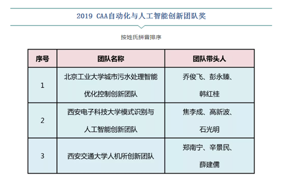 经由陕西省自动化学会推荐,通过2019年度CAA科学技术奖励评审会议专家评审委员会评审,我校焦李成教授、高新波教授、石光明教授领衔的beat365平台官方网站模式识别与人工智能创新团队获CAA自动化与人工智能创新团队奖。