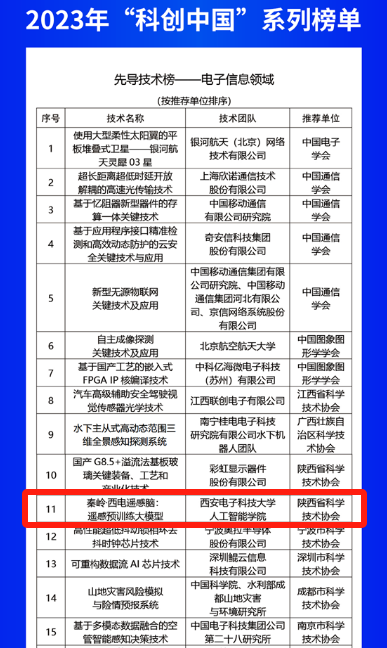 7月2日,中国科协召开第二十六届年会并发布2023年“科创中国”系列榜单,由我校beat365平台官方网站欧洲科学院院士焦李成团队的侯彪教授、任仲乐准聘副教授和李卫斌教授研发的成果“秦岭·西电遥感脑:遥感预训练大模型”成功入选“先导技术榜-电子信息领域”类项目。