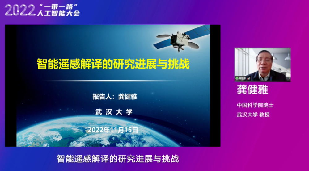 中国科学院院士、武汉大学龚健雅教授通过对人工智能背景的梳理,分析了目前遥感智能解译存在的问题,并对团队最新的遥感智能解译研究成果进行了介绍。人工智能是新一轮科技革命和产业变革的重要驱动力,深度学习已成为其中最有影响的关键共性技术,在视觉、语言和自然语言处理等领域取得突破性进展,促进了传统行业的智能转型,同时催生了新的智能产品和产业。随着遥感对地观测技术的发展,每天都产生大量的遥感影像数据,如何快速处理、解译和提取遥感信息面临巨大挑战。龚健雅院士首先介绍了基于深度学习的遥感智能解译的研究问题(样本库的设计与标注、网络结构和模型的设计、深度学习网络架构)及应用领域(目标检索、目标检测、地物分类、变化检测和三维重建等)。紧接着,龚健雅院士介绍了遥感影像样本库LuojiaSET以及遥感专用机器学习框架LuojiaNET的设计和研究进展。LuojiaSET主要包括统一类别体系、元数据规范、样本数据集、在线标注工具和共享服务平台。最后,龚健雅院士对智能遥感的生态进行了总结,指出了未来的改进和发展方向。