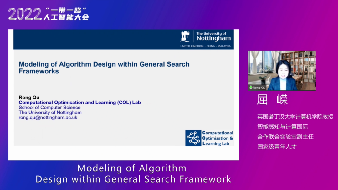 英国诺丁汉大学计算机学院屈嵘教授围绕实现有效新算法的自动化设计,提出基于算法设计的通用模型,构建了通用搜索框架(GSF),以统一的方式制定一系列不同的元启发式算法。屈嵘教授指出,运用各种优化算法及机器学习算法解决现实生活中的实际问题时,需要具体考虑问题的建模和算法的建模。在不同的问题场景里,算法的建模包括算子的选用及参数设计,然后通过实验调整参数来提高算法的有效性,最后提供给工业界最好的解。整个过程耗费时间周期长,且不同研究者经验不同,设计算法的有效性不同,面对新问题需要重新调整算法花费时间也不一样。屈嵘教授近期的研究重点就在于模型化算法及其自动算法设计,她具体介绍了基于算法模型建立的用于实现算法设计的通用的搜索框架(GSF)。框架的模块中不同的算子和方法由模型定义,称为通用组合优化问题(GCOP)模型。GCOP模型通过在算法空间中搜索算法分量,选用不同基本算子基本元素组合找到最佳组合,从而得到设计出最好的解。GCOP模型与超启发式算法相似,但是超启发式算法底层的启发式算法需要人工设计、选择和设置,是GCOP模型的一个子集。而GCOP模型通过自动选择,可能发现一些人类算法工程师尚未发现的新的算子的选择和设置。最后,屈嵘教授给出了一些GCOP模型的应用实例,展现了自动算法的优越性和有效性。