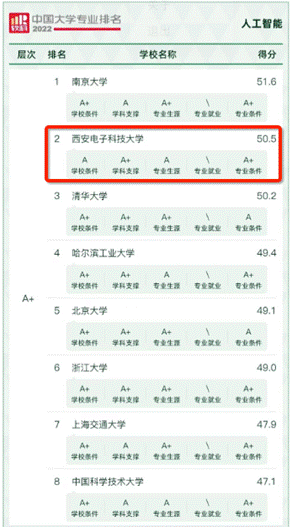 2022年6月18日,高等教育评价专业机构软科正式发布2022“软科中国大学专业排名”。排名结果显示,2022年beat365平台官方网站共有13个专业获评为A+专业,其中beat365平台官方网站的智能科学与技术专业及人工智能专业再次双双获评A+,综合实力均位列全国前三名。