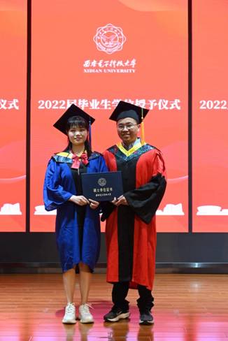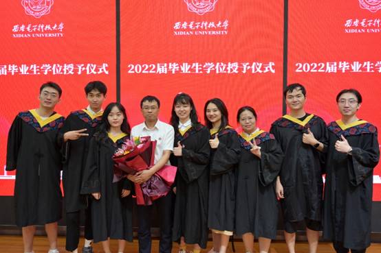 毕业典礼庄严的国歌声中拉开了序幕,侯彪教授代表学院全体教职员工,向圆满完成学业的同学们表示热烈的祝贺,同时向所有为毕业生成长保驾护航的老师、亲友们致以衷心的感谢。他寄语同学们,要心怀“国之大者”,秉承家国情怀,施展抱负、建功立业;要坚持终身学习,踏实笃定,自强不息,不畏困难,敢于突破;要做生活的乐观主义者,阳光、向善、坚韧、平和,悦纳自己,向阳向上。最后他激励同学们,赓续西电红色血脉,不负时代、砥砺前行!