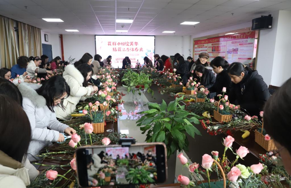 阳春三月,桃李争妍,在这春意盎然,万物复苏的季节,我们迎来了专属女性的节日。为庆祝“三八”国际妇女节的到来,3月7日下午,304永利集团官网入口分工会举办了“花样巾帼绽芳华,插花品香沐春花”——插花花艺活动。活动由国家二级插花花艺技师、中国插花花艺协会高级讲师、304永利集团官网入口园林植物高级实验师、荆楚茶道插花非物质文化遗产传承人陈兰老师现场指导,学院分工会教职工近50人在花香四溢中感受着插花艺术浓郁的魅力。
