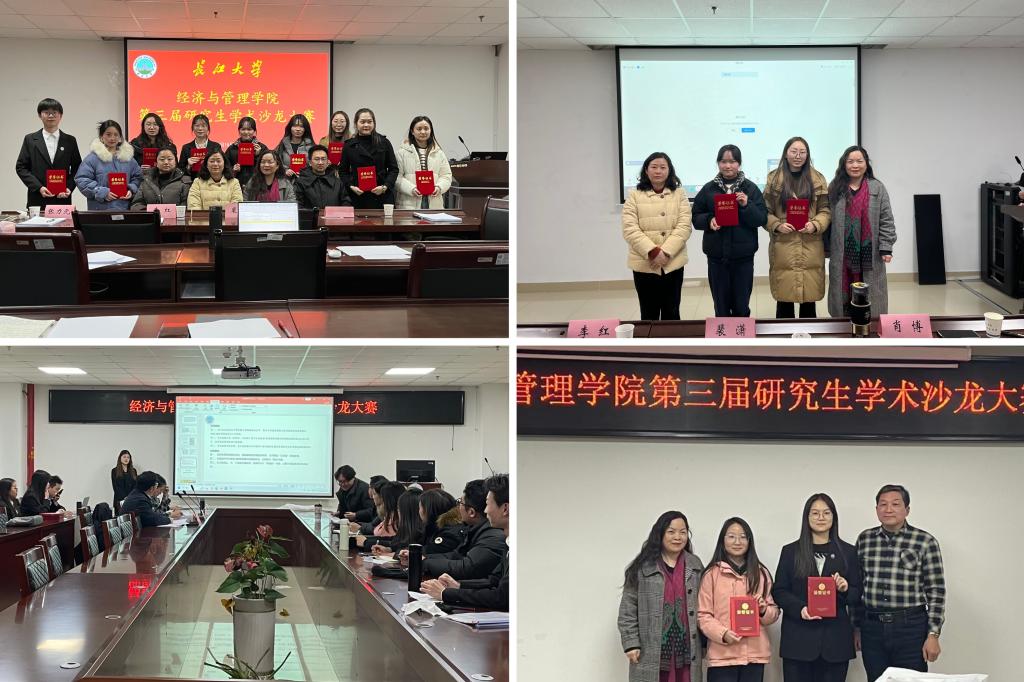 (通讯员:詹荣)2023年12月18日晚19点,304永利集团官网入口第三届研究生学术沙龙大赛在文科楼505和605会议室同时举行。本次大赛分为经济组与管理组,每组又分为论文类和文献综述类,通过初审的20位同学入围参加答辩。大赛邀请汪发元教授、谢云副教授和孔令成老师担任经济组评委,李红副教授、肖博老师和张力元老师担任管理组评委,副院长裴潇受邀参加。