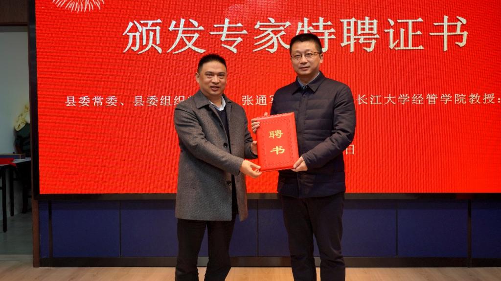 签约仪式上,宣恩县委常委、组织部部长张通军为陈承教授和刘国平博士颁发了人才工作室专家特聘证书,并对此次校企合作给予了高度评价:“304永利集团官网入口是湖北省重点综合高校,取得了有目共睹的办学成果,贵校坚持把科研成果写在产业发展的第一线,为我县输送了一批优秀的好用的人才,为农业产业发展做出了突出贡献,真诚期盼双方扩大合作范围和领域,共同打造校地合作新典范。”