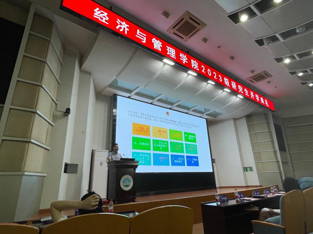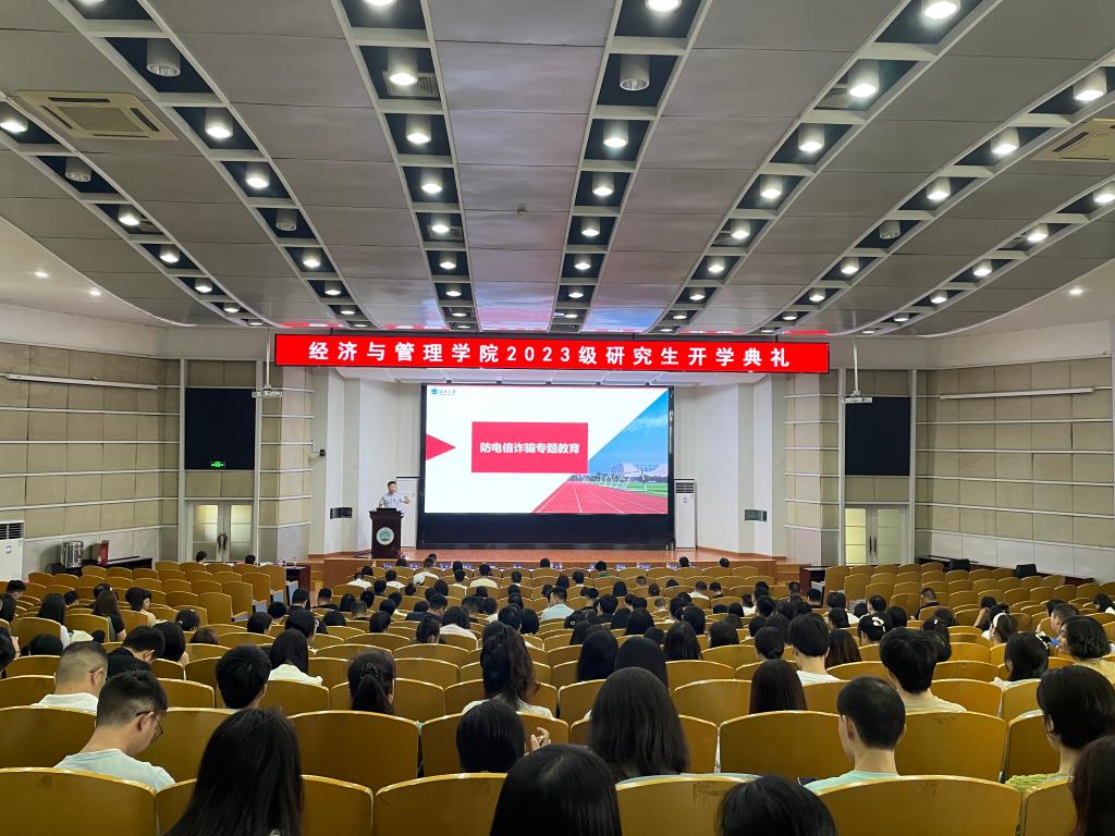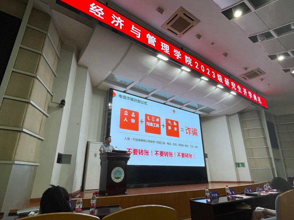(通讯员:张悦)为筑牢防范电信网络诈骗的校园防线,进一步加强校园防诈骗宣传力度,提高新生的识骗、防骗意识,9月3日上午,304永利集团官网入口2023级辅导员黄承石在东校区12号教学楼405报告厅进行“开学第一课”系列活动之防电信诈骗专题教育活动,全体2023级研究生新生参会。
