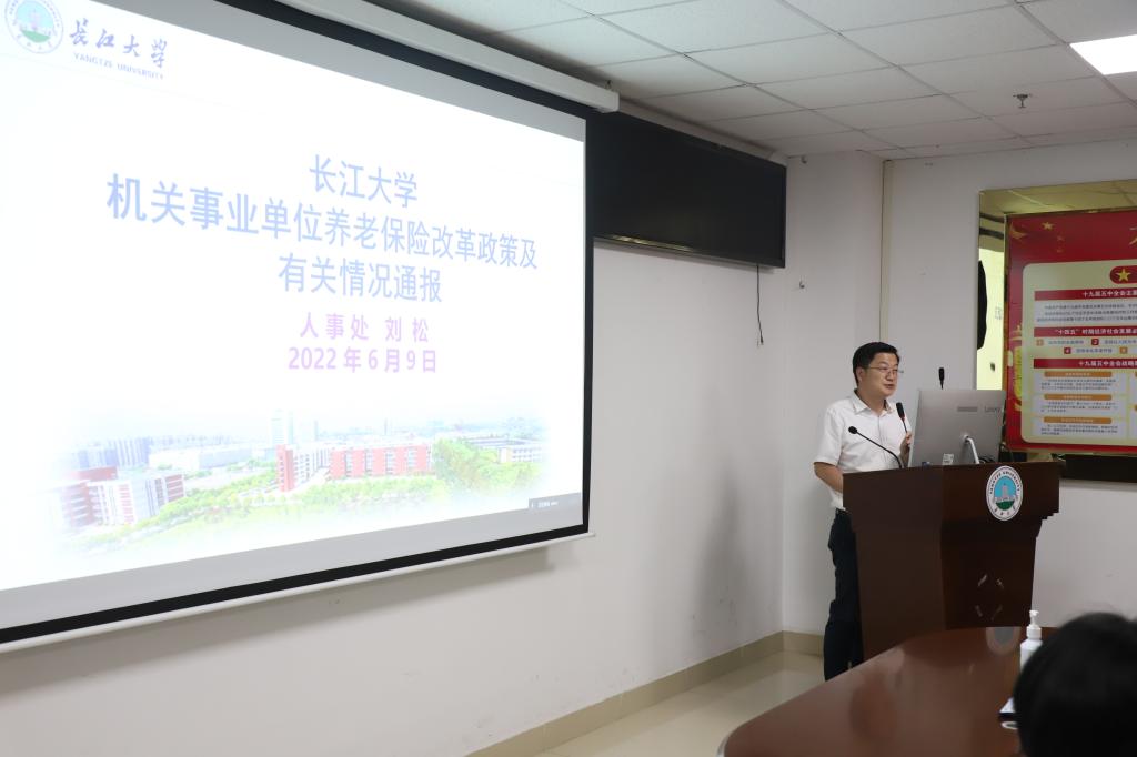 校人事处刘松副处长应邀到永利集团官网为全体教职工作了304永利集团官网入口机关事业单位养老保险改革有关政策及情况通报。他围绕学校养老保险的历史沿革、政策依据、核算方法、改革目标等四个方面对学校的养老保险改革进行了详细的政策解读。