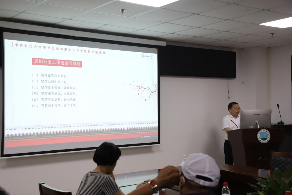 院党委书记樊帆就学院意识形态领域的工作进行了部署,并带领全体教职工完成了意识形态、师德师风、疫情防控三个专题的学习。他强调,全体教职工要深刻认识到意识形态工作的重要性,要高举中国特色社会主义伟大旗帜,担当举旗帜、聚民心、育新人、兴文化、展形象的使命任务;要树立崇高理想,注重自身修养提升,培育重德养德良好风尚,防止师德失范行为;要注意保持健康生活方式,严格遵守学校疫情防控规定,引导学生在非常时期健康成长。