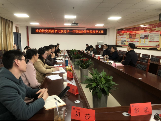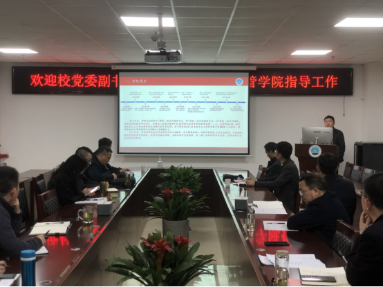 徐辉从学院发展的历史沿革、本科生教育、研究生教育、科研情况、培训中心建设、学生工作六个方面介绍了学院的基本院情与已取得的成绩,同时也就学院管理与建设中存在的问题进行了汇报,希望能够在学校的理解与支持下化解相关问题,实现学院高质量发展的目标。与会人员围绕学科建设、人才引进、教师科研与教研、疫情防控等具体问题进行了深入交流探讨。