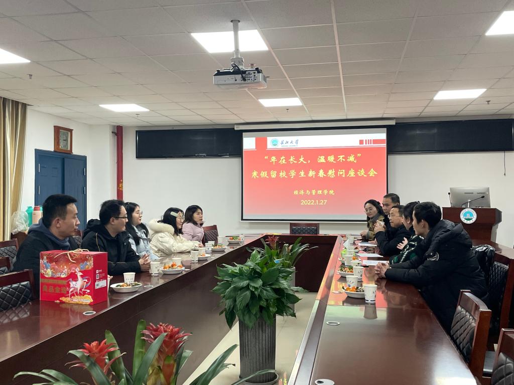 2022年1月27日下午,304永利集团官网入口寒假留校学生新春慰问座谈会在文科楼505会议室举行,会议由党委副书记王中梅主持,党委书记樊帆、学工办副主任叶星以及年级辅导员娄君庭、朱翠玲、李云妮参加了座谈会。