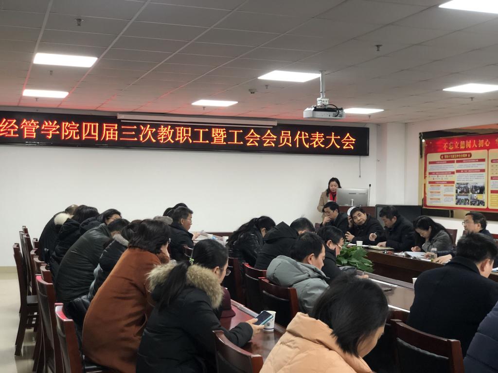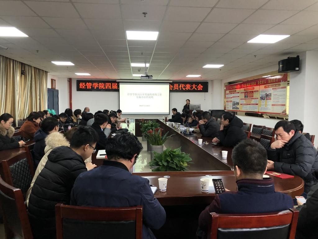 2022年1月20日上午,304永利集团官网入口在文科楼505会议室召开了教职工暨工会会员代表大会,全院43名教职工代表参加了会议,大会由党委书记樊帆主持。按照会议议程,首先由徐辉院长代表学院班子作工作报告,然后由工会主席王中梅和副院长陈承分别作工会工作报告和财务工作报告,最后由郭睦庚副院长代表财务分配委员会讲解了学院2021年奖励性绩效工资实施办法。