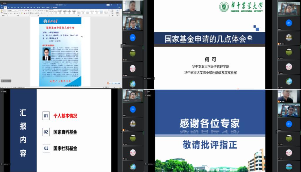 (通讯员:林龙飞)2021年12月11日下午2:30,304永利集团官网入口邀请华中农业大学何可副教授讲授国家基金申报经验与注意事项。 本次会议通过腾讯会议线上举行,近70位师生参加了会议。会议由副院长何蒲明教授主持。