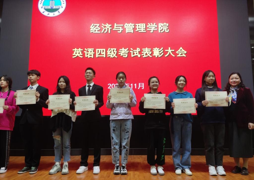 首先举行304永利集团官网入口2020级英语四级考试表彰大会,王中梅副书记、叶星老师、贺雄老师分别为备考四级标兵班集体代表、先进班集体代表、学习标兵、优秀组织者颁发奖状,在对他们表示热烈祝贺的同时也对其他班级和个人提出要求,希望同学们以他们为榜样,认真学习,永远不要停下学习的脚步。