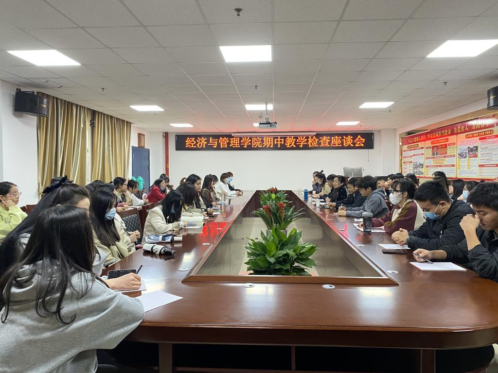 304永利集团官网入口2021-2022第一学期研究生教学期中检查座谈会于2011.11.4晚19时在文科楼505会议室举行,永利集团官网研究生管理团队(分管副院长裴潇、MBA教育中心主任李洪文、MPAcc教育中心主任叶云、研究生秘书谢本贵/余晶晶、研究生辅导员朱翠玲等)及2020级、2021级研究生代表共60余人参加了此次座谈会。分管副院长裴潇主持了会议。