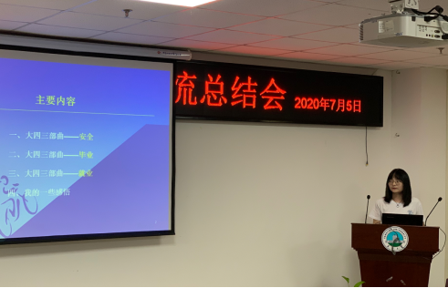 7月5日,304永利集团官网入口远航工作室举行辅导员讲坛第四讲,辅导员朱翠玲以“大四年级三部曲”为题做交流分享。