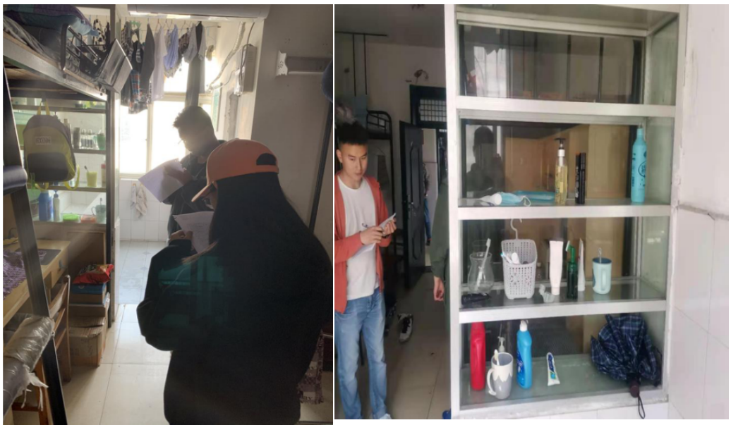 各个卫生检查小组对各自分配到的寝室依次进行了严格的卫生与安全检查,本次检查主要从寝室学生个人内务卫生、寝室整体公共卫生打扫以及寝室安全隐患排查等三个方面展开,着重对存放使用违规使用大功率电器、豢养宠物、易燃易爆杂物等环节进行了排查,切实杜绝安全隐患,增强同学们的安全防范意识。检查小组成员同时对相关宿舍存在的如地面不整洁、桌面及书架杂乱无章,使用违禁物品等问题,逐一提出了明确的整改方案,并希望能清楚认识到问题所在,及时发现解决,一同营造舒适安全的寝室生活环境。
