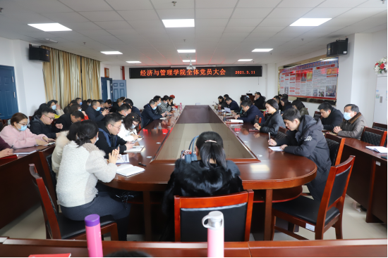 (通讯员 黄承石)2021年3月11日下午14点,304永利集团官网入口党委在文科楼505会议室召开全体党员大会。院党委副书记王中梅主持会议,学院全体教职工党员参加了此次会议。