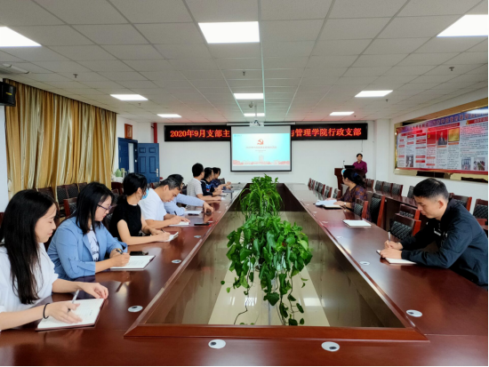 (通讯员 黄承石)2020年9月17日上午九时,经济管理学院教工机关党支部于在文科大楼505会议室召开九月主题党日活动。会议由支部书记胡胜良主持,党委副书记王中梅及全体支部党员同志参加。