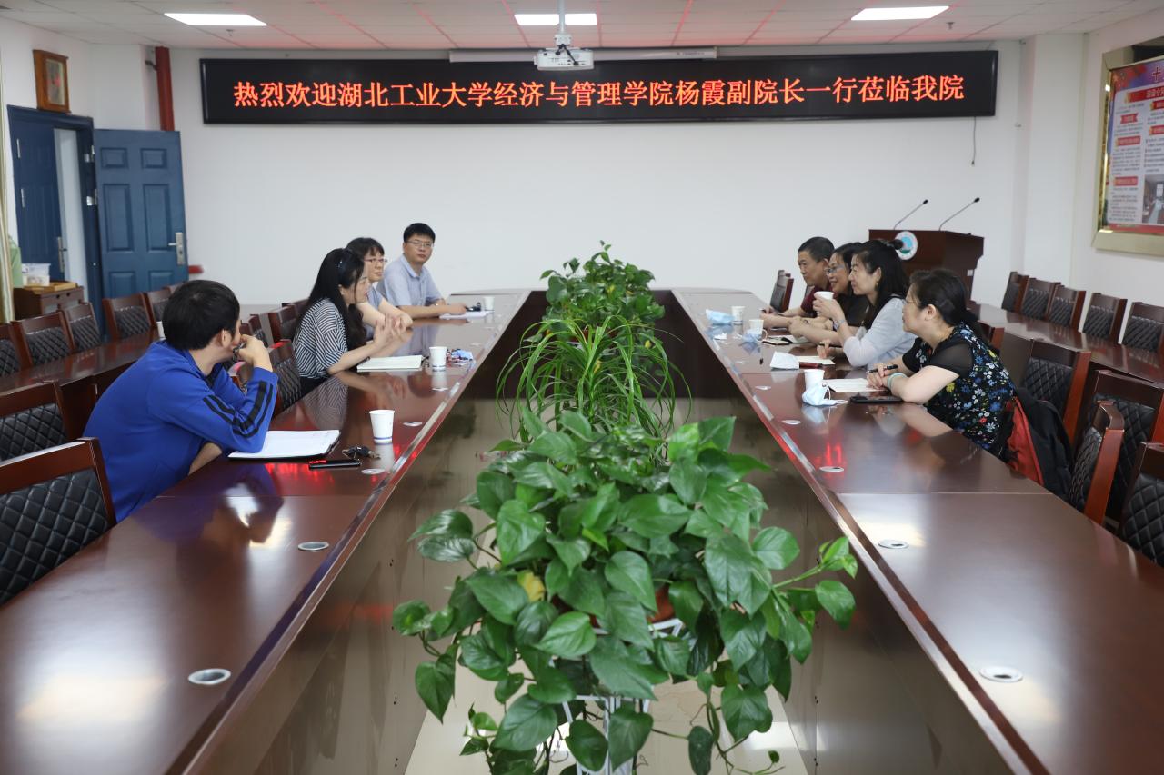 【通讯员 胡晓双】2019年7月12日上午,湖北工业大学304永利集团官网入口.副院长杨霞教授、工商系主任魏想明教授、MBA中心主任邵继红教授、会计系主任及MPAcc中心代文主任等一行来到永利集团官网,就研究生教育相关问题进行调研交流。永利集团官网副院长裴潇教授、会计系主任康玉梅副教授、MBA教育中心办公室主任李洪文副教授、MPAcc教育中心办公室主任叶云博士参与了座谈。