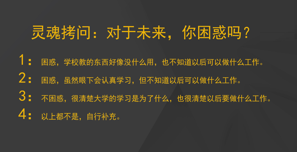 课堂伊始,蔡总发出灵魂拷问“你的大学困惑吗?”同学们都在评论区回复了自我认知下的大学生活现状,大部分同学都表示对自己的未来比较迷茫。对于这个问题,蔡总回答道:“有困惑是正常的,这是你们这个阶段一定会经历的事情,唯有学习与成长,才能走出迷茫。” 蔡总用自己第一份在世界五百强公司面试的成功经历告诉大家:“大学的学习是很有用的,有想法并不难,就看你平时有没有认真积累和思考,当机会来临时你能否抓住。”