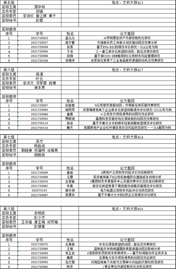 二、答辩分组安排: