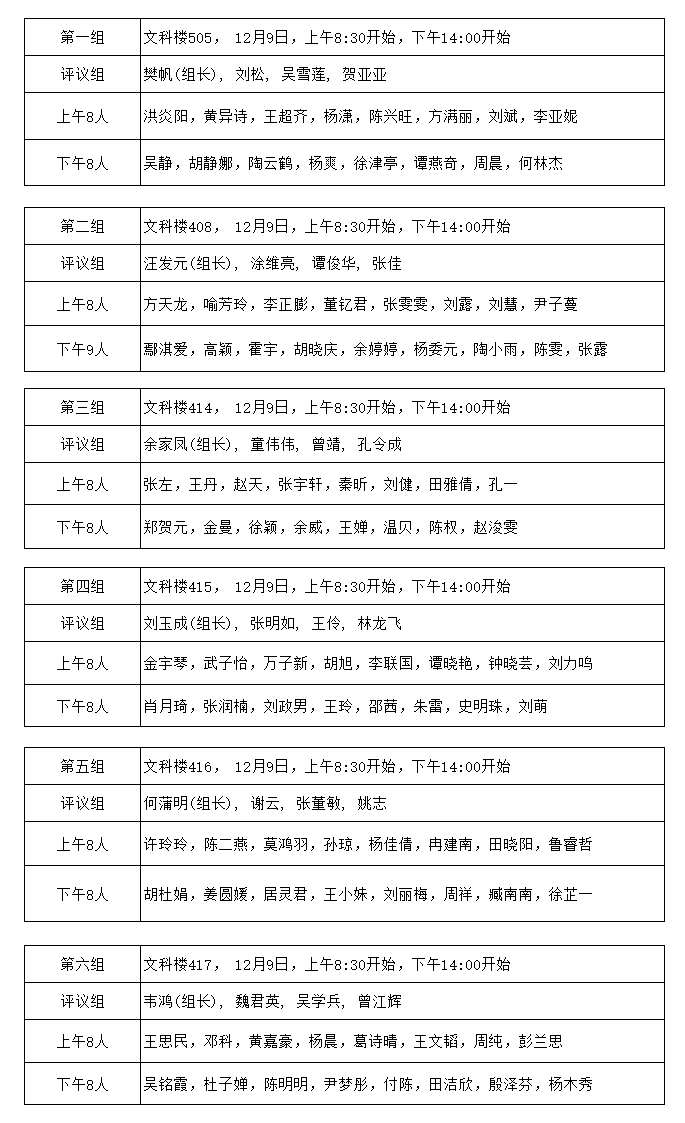 三、答辩小组分组安排
