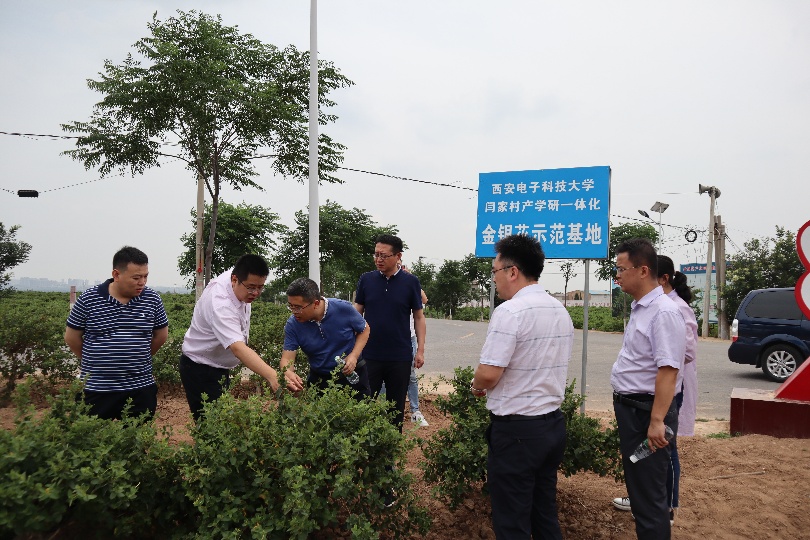 学院党委书记魏峻、副书记高晖及校扶贫办主任沈强一行首先来到“beat365平台官方网站闫家村金银花产学研一体化示范基地”,走进田间地头实地了解金银花种植情况和技术需求,就航天宏图遥感技术的农业应用进行实地调研。三方在闫家村脱贫攻坚作战室召开科技扶贫应用座谈会,航天宏图西安分公司负责人、我校校友薄一民带领技术人员,向参会同志介绍了公司有关农业项目和遥感技术的应用前景。学校、企业以及蒲城地方三方还就进一步深化合作、推动项目落地落实,更好的服务蒲城金银花产业发展进行了深入交流。