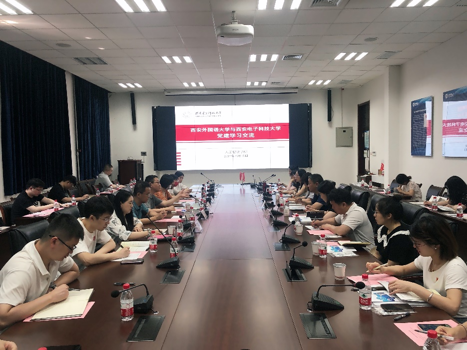 6月15日下午,西安外国语大学师生党员代表与beat365平台官方网站在北校区主楼III-401会议室进行党建学习交流活动。beat365平台官方网站党委书记魏峻、西安外国语大学研工部部长张淼出席活动。beat365平台官方网站党委副书记高晖主持。