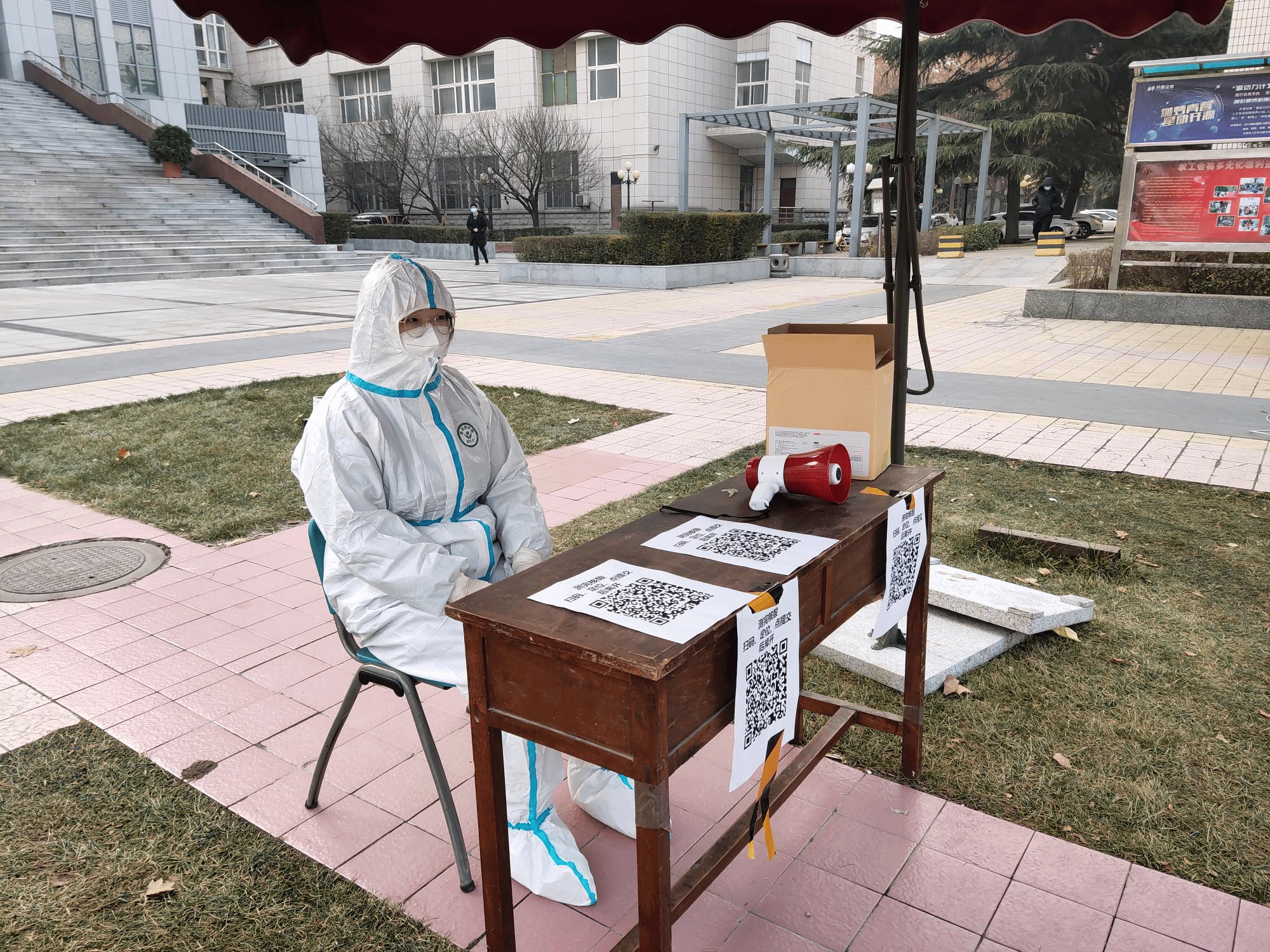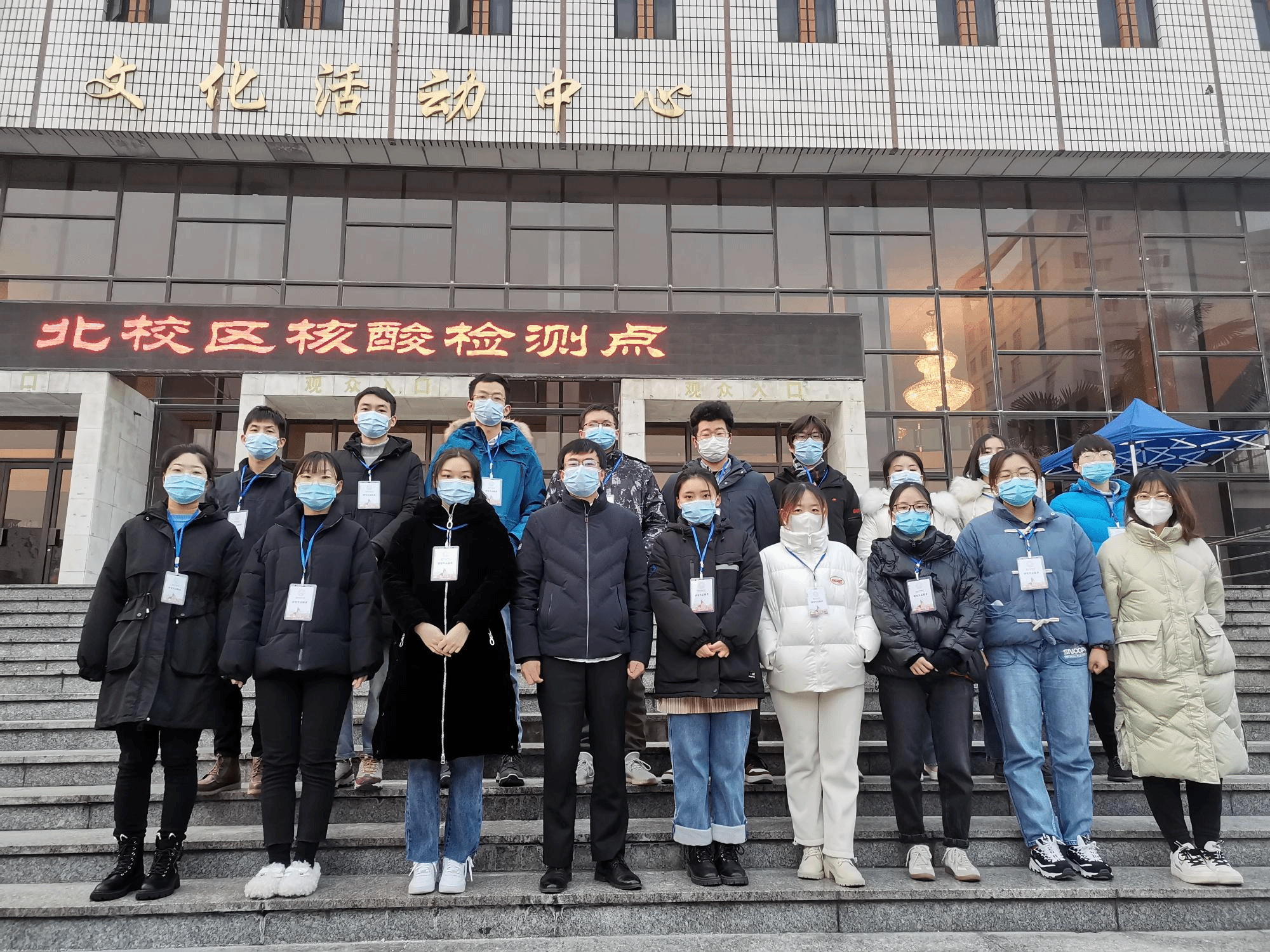1月3日清晨,博士第一党支部支委成员早早来到北校区大礼堂,组织北校区核酸检测志愿服务工作,并将校友捐赠的暖宝宝带到防疫一线,送给志愿服务的同学们使用,希望能让同学们身暖、心更暖。