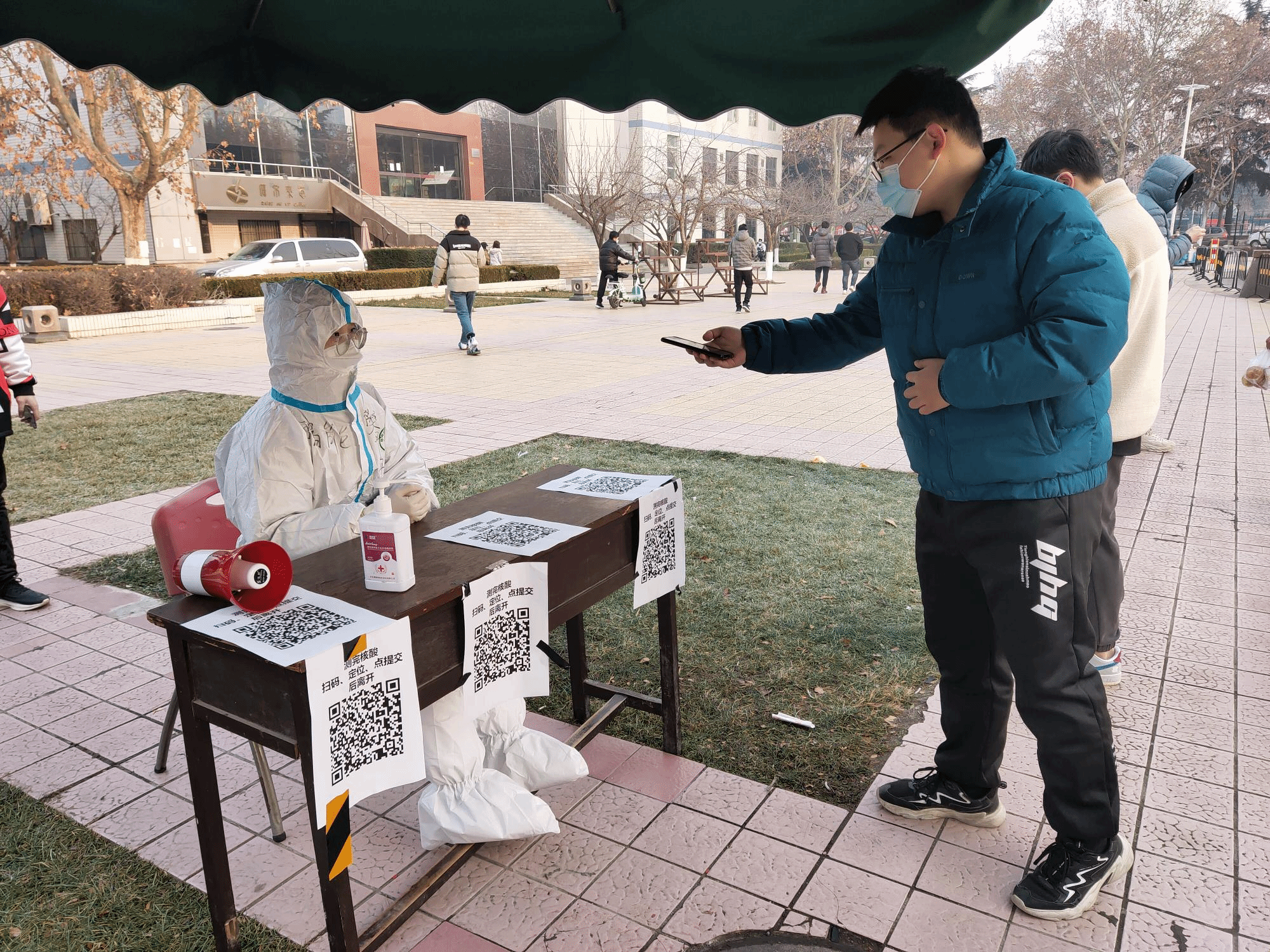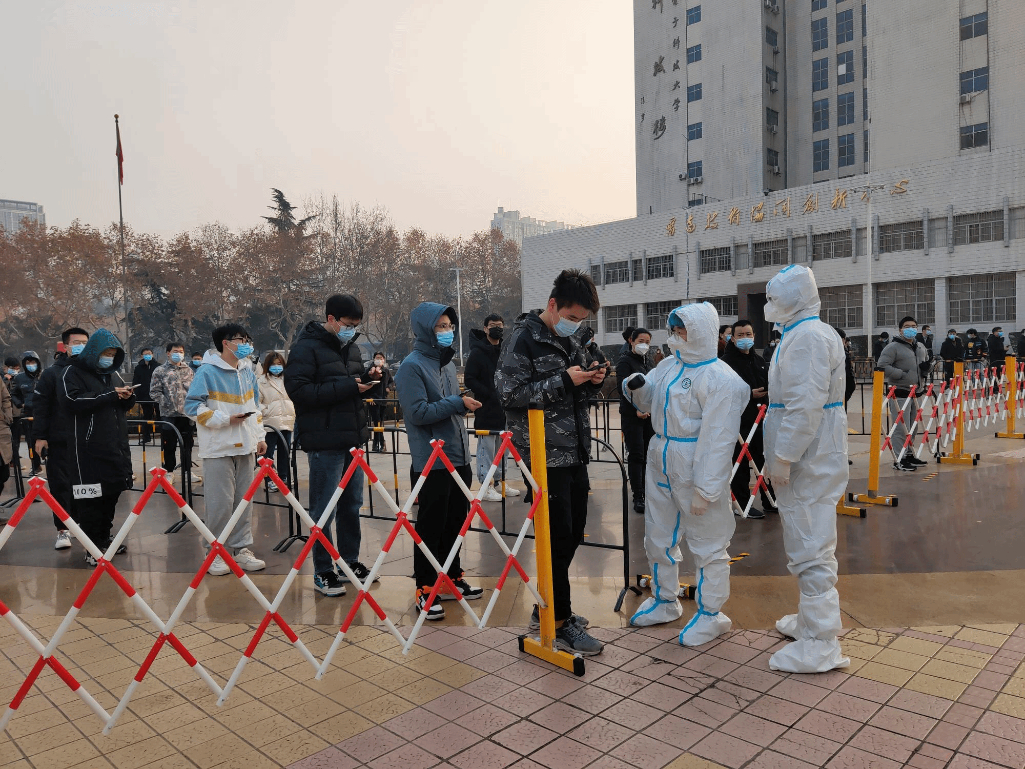 他们在几小时的志愿时间内不断重复着相同的动作,当被问及累不累时,博士第一党支部书记刘梦琨说:“我不觉得辛苦,能在国家特殊时期提供自己力所能及的帮助,我很开心。西安疫情突发,每一位志愿者的服务对于这个城市都是非常非常重要的,同学们对我们说的每一声‘谢谢’,都是对我们服务实效的最好证明。”
