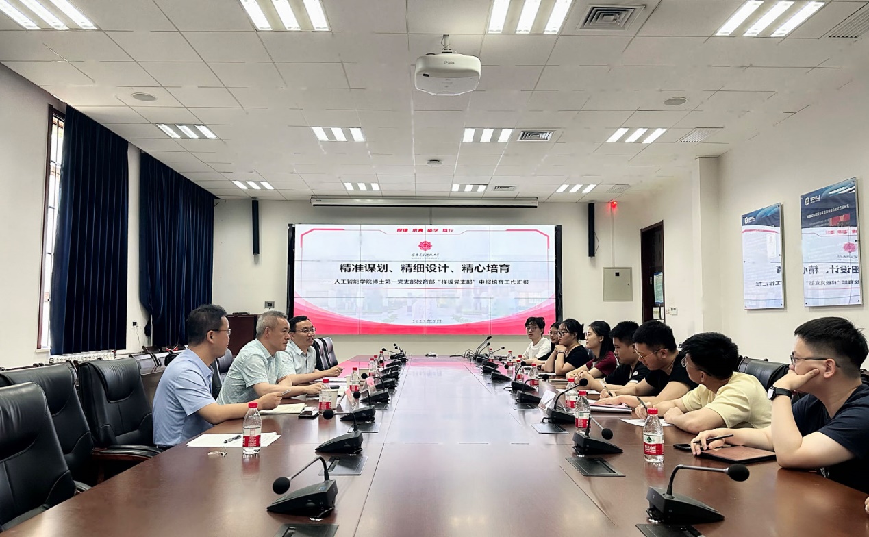 郭俊首先听取了博士第一支部书记杨瑞同志就博士第一支部关于教育部样板支部的申报和创建情况,随后听取了各位党员代表的发言。