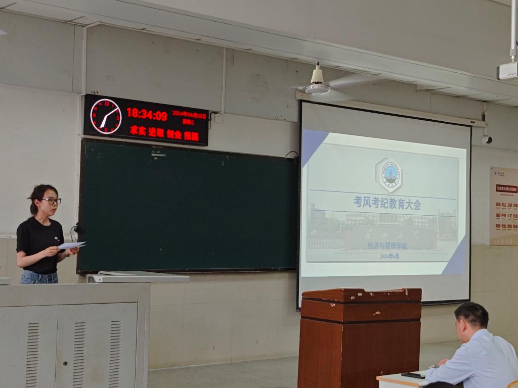 在讲座正式开始之前,方含之强调六级考试与期末考试考风考纪,并提出“三不原则”,即不能作弊、不好作弊、不想作弊,同时列出考试作弊处理办法来告诫同学要诚信报考。