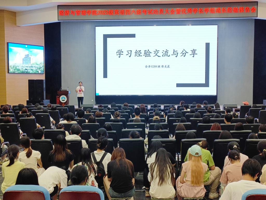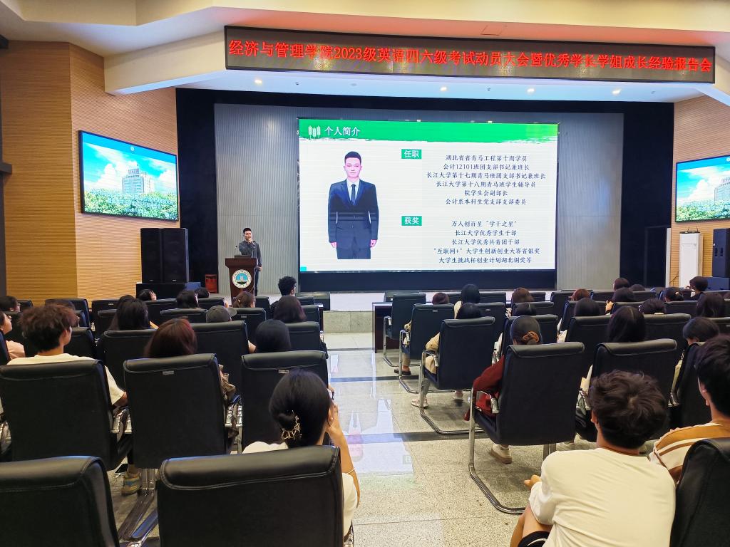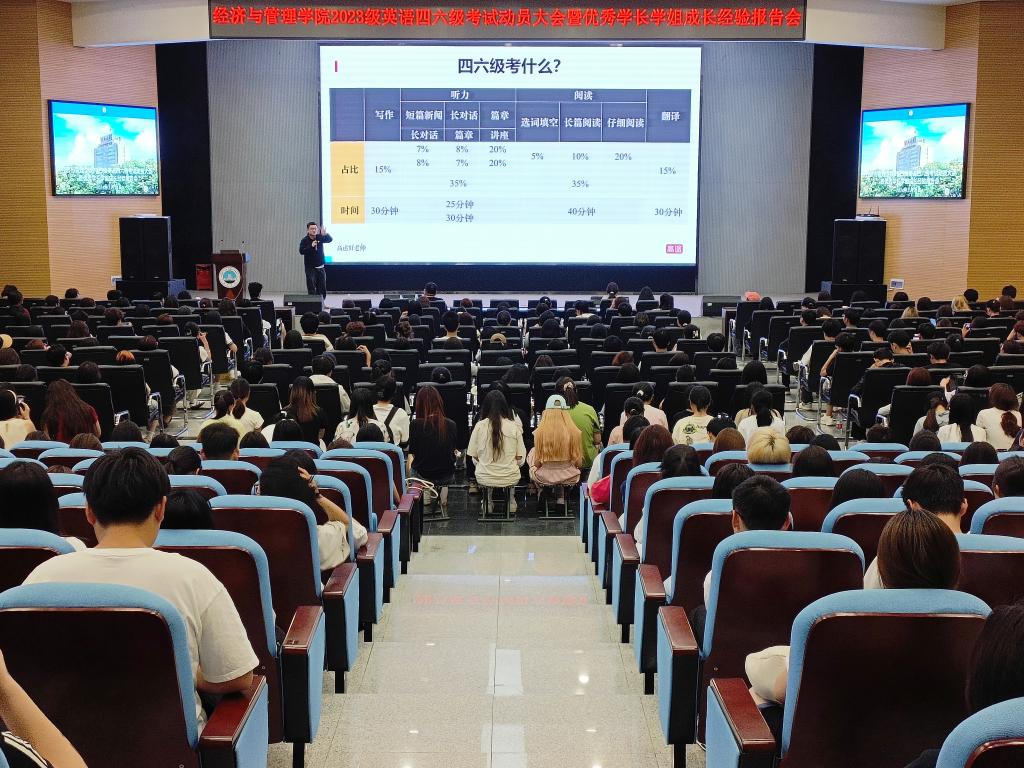 2024年上半年全国大学英语四、六级考试将于6月15日进行。为进一步做好考前辅导,帮助学生调整好备考状态,鼓足考试信心,5月13日晚上7:00,304永利集团官网入口在西校区农科大楼1058报告厅举行2023级本科生英语四六级考试动员大会暨优秀学长学姐成长经验报告会。活动由2023级辅导员李镇主持,学院党委副书记平先锋、教师代表及全体学生参加。