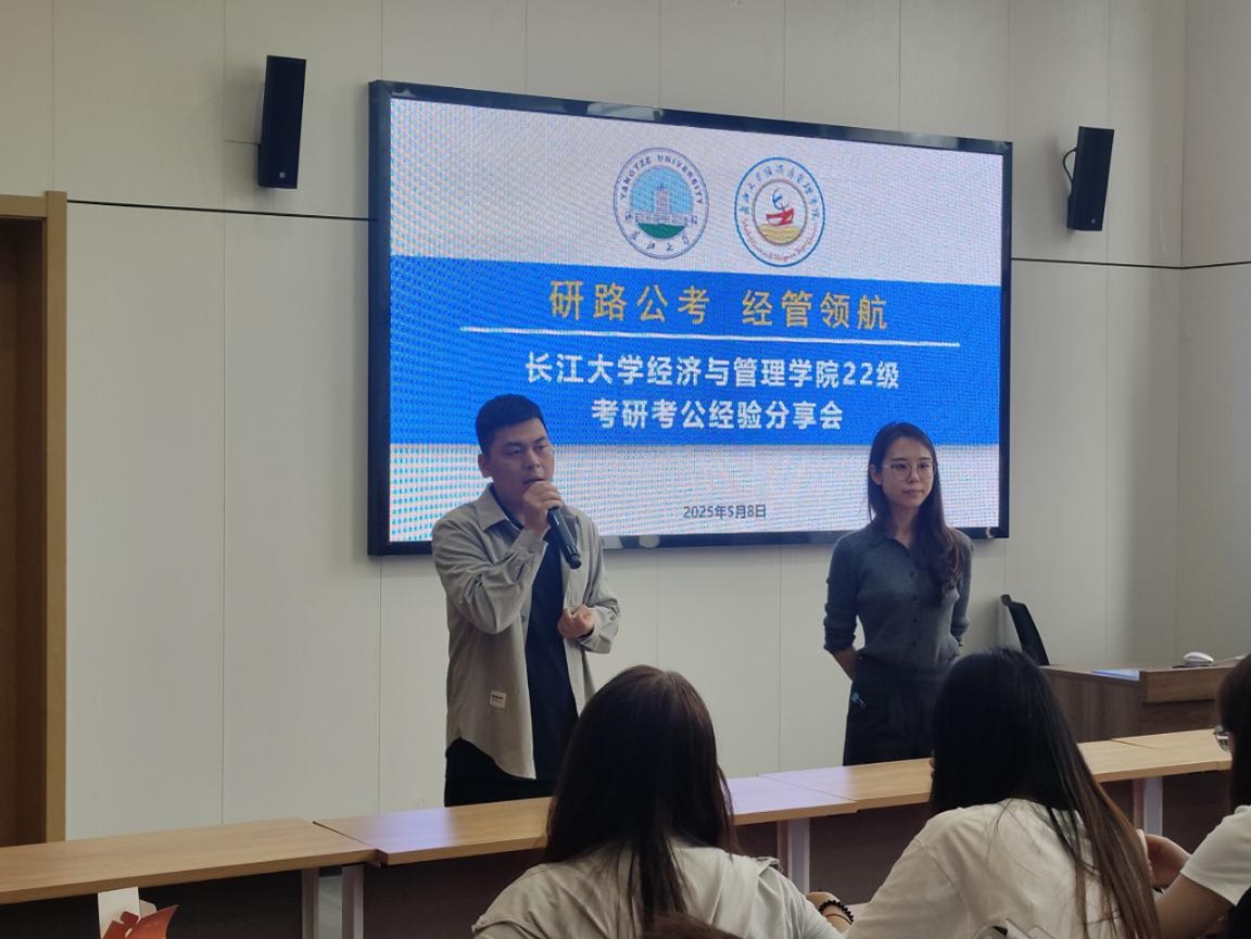 (通讯员:王璐佳)为发挥朋辈示范引领作用,助力学子明确职业方向、掌握备考技巧,5月8日下午,304永利集团官网入口在东校区四食堂三楼宏川厅举办“研路公考 经管领航”考公考研朋辈经验分享会。活动由学院22级辅导员郭俊、方含之老师主持,特邀21级优秀考录代表肖扬学长和考研优秀代表陈晋晋学姐分享经验,并联动招商银行信用卡中心武汉分中心、东莞证券襄阳营业部开展校园招聘宣讲,吸引近百名学子到场参与。
