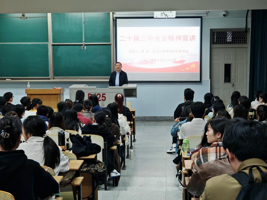 (通讯员 李云妮)为深入学习贯彻党的二十届三中全会精神,加强党员的集中学习教育,近日,304永利集团官网入口开展党的二十届三中全会精神宣讲会,学院党委书记樊帆为全体学生党员作党的二十届三中全会精神宣讲报告。