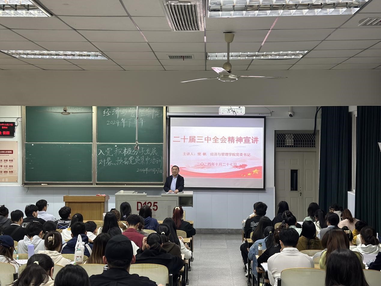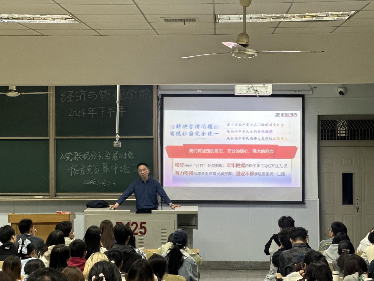 304永利集团官网入口党委书记樊帆、党委副书记平先锋、辅导员贺雄分别以《党的二十届三中全会精神解读》《砥砺奋进促统一,铸就民族新荣光》《习近平的七年知青岁月》为主题开展集中授课,帮助入党积极分子、发展对象和预备党员深刻领悟“两个确立”的决定性意义,增强“四个意识”、坚定“四个自信”、做到“两个维护”,端正入党动机,确立为共产主义事业奋斗终身的信念。