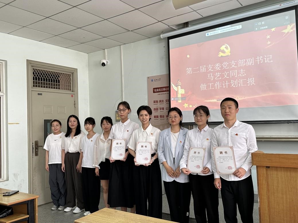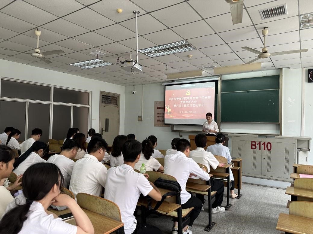(通讯员 吴孟怡)“吾日三问吾身”让党纪学习教育“常”相伴。2024年6月18日下午,研究生第一党支部在13教B-110召开六月主题党日活动暨支委换届大会,党支部书记任玉婷、全体学生党员参加。