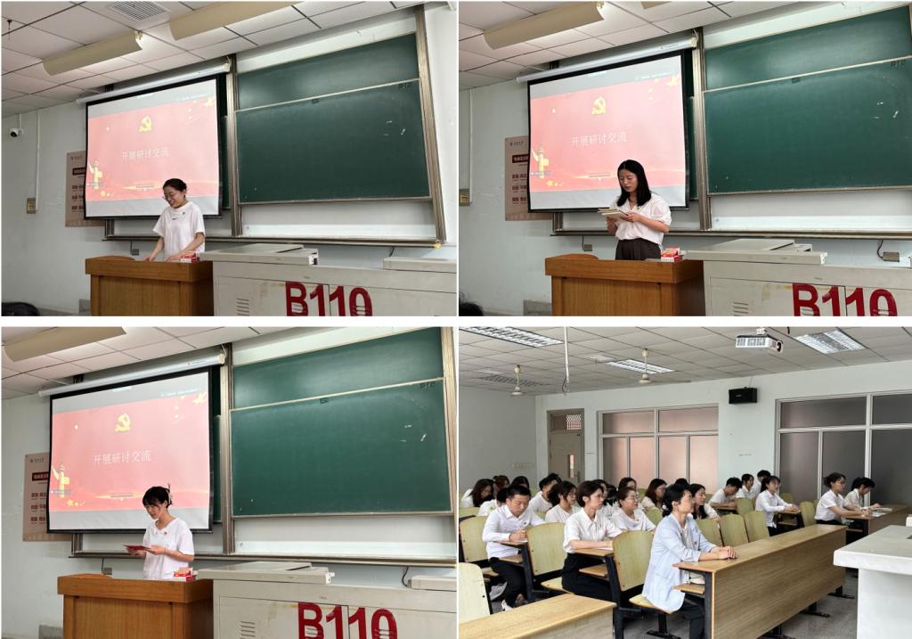 会议第四项,进行研讨交流环节。尹子蔓、金宇琴、刘露三位同志分别从思想、学习、工作、生活等方面向党支部进行汇报,与同志们展开学习分享。