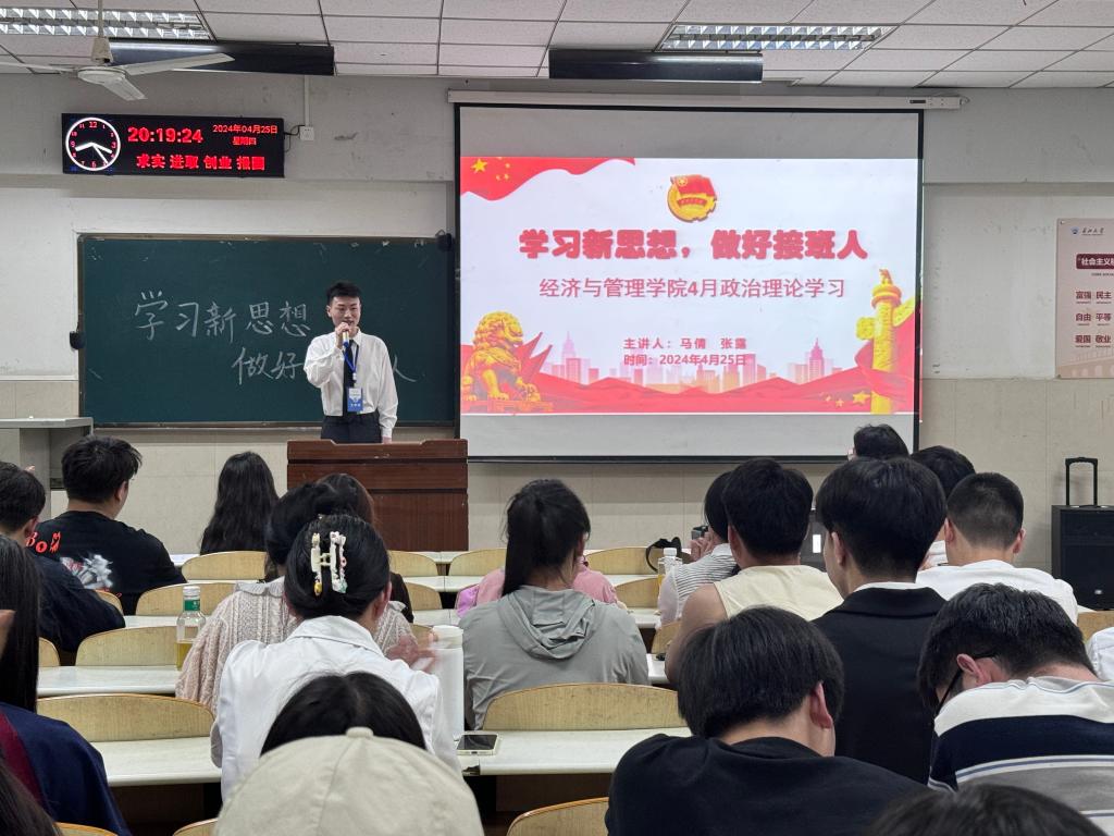 (通讯员 何小艳)为深入学习贯彻习近平新时代中国特色社会主义思想,提升永利集团官网研究生政治理论素养,引导学生做党的创新理论坚定信仰者和忠实实践者,坚持学思贯通、知行统一,304永利集团官网入口于4月25日晚19点,在12教102教室开展四月政治理论学习活动。本次活动由研究生会组织开展,全体2023级研究生到场参会,2022级、2021级研究生通过腾讯会议线上同步参会。