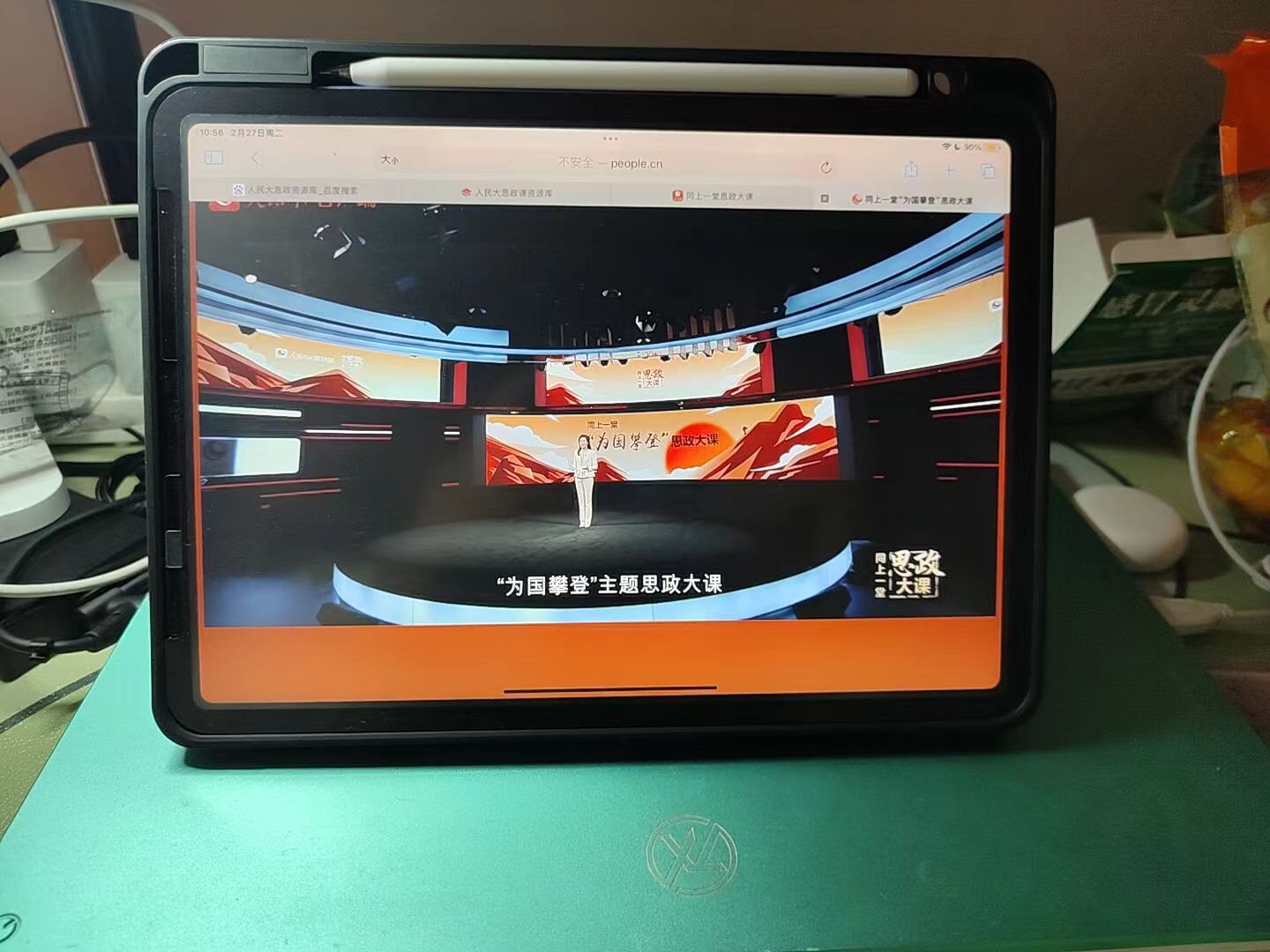 辅导员、学生干部和学生党员在东校区文科楼516现场集中观看“为国攀登”思政课视频,聆听中国科学院院士王焰新、中国地质大学(武汉)校长宋海军以及体育学院的青年教师何鹏飞征服珠峰的感人故事,领悟“扎根中国、胸怀天下勇攀高峰、追求卓越”的攀登精神。