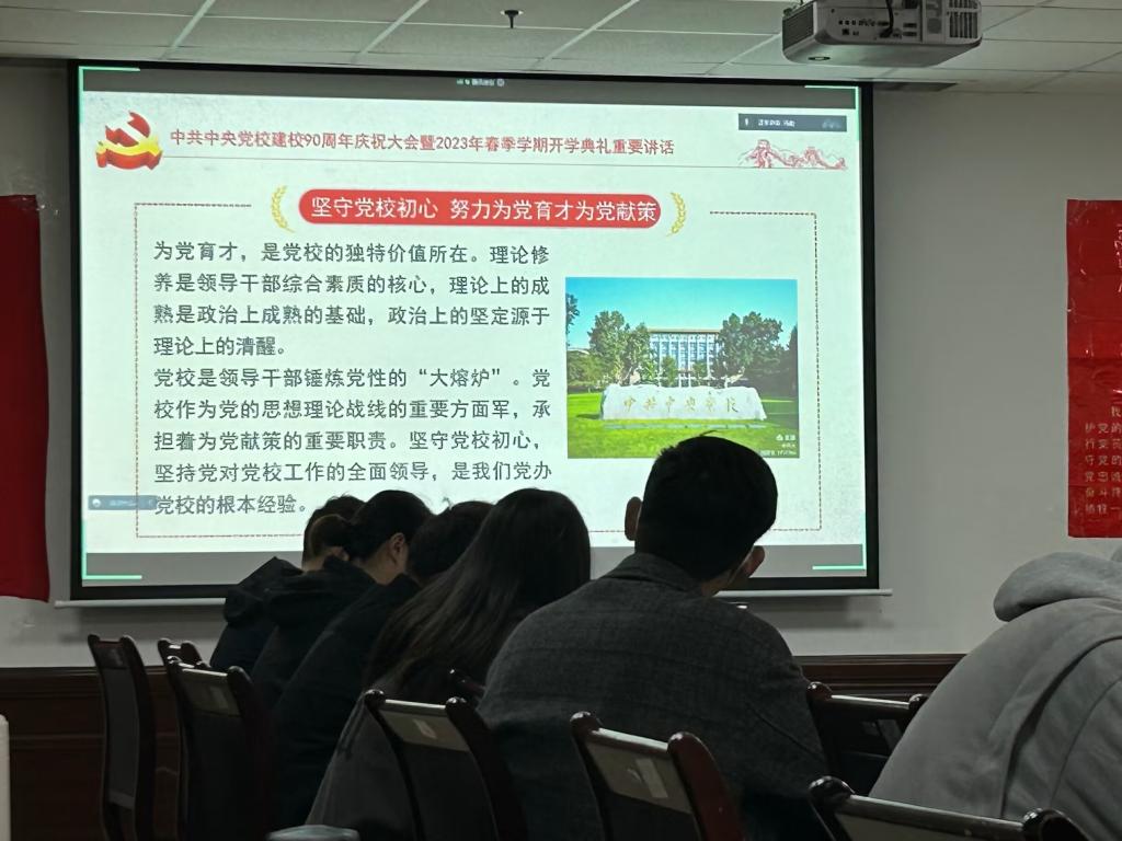 会议第四项,党员们对“中共中央党校建校90周年庆祝大会暨2023春季学期开学典礼重要讲话”“十四届全国人大一次会议在京闭幕 习近平发布重要讲话”“党员不能信仰宗教专题学习”三个专题进行系统学习。