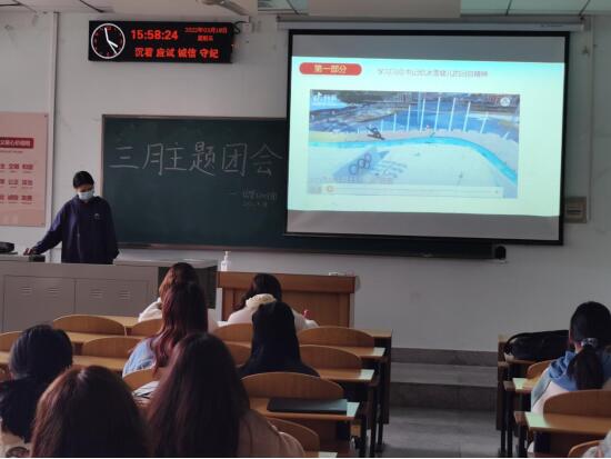 本次主题团会分为5大板块,主要围绕“学习习近平总书记给冰雪健儿的回信精神”展开。首先主持人的热情宣讲让同学们感受到了习近平总书记对教育、体育工作的高度重视和对广大青少年的亲切关怀。同时引导永利集团官网同学以中国冰雪健儿为榜样,坚定理想,刻苦学习,努力实现德智体美劳全面发展,在新时代新征程上留下无悔的奋斗足迹。